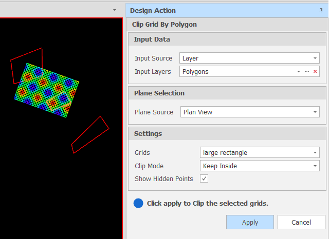 Keep the grid points that fall inside the polygons and discard the outside points. This is the default. |