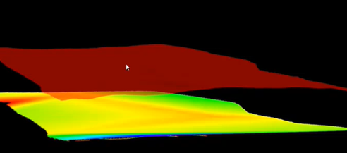 For example, the roof surface of a seam (E) is chosen as the reference grid and a Z expression is used to create an output grid which provides a visual indication of the thickness of that seam: