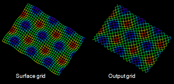 This utility will “register” the points of the reference grid onto the surface grid. The expected output should essentially be a grid with the same origin, spacing and rotation as the reference grid, but following the contours of the surface grid.