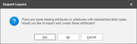 If Include Attributes was selected when the Export file was created and there are missing attributes in the current model, you will be prompted to create them: