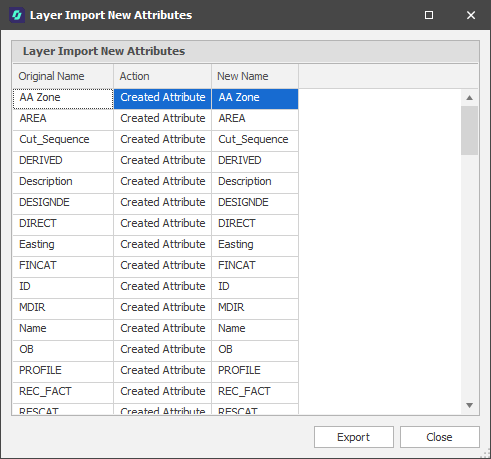 If you choose Yes and missing attributes are created, a list of new attributes is shown on completion of the Import process: