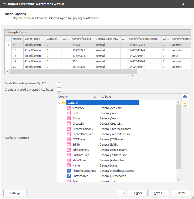 Use the Attribute Mappings table to map the attributes you want to import to layer attributes.