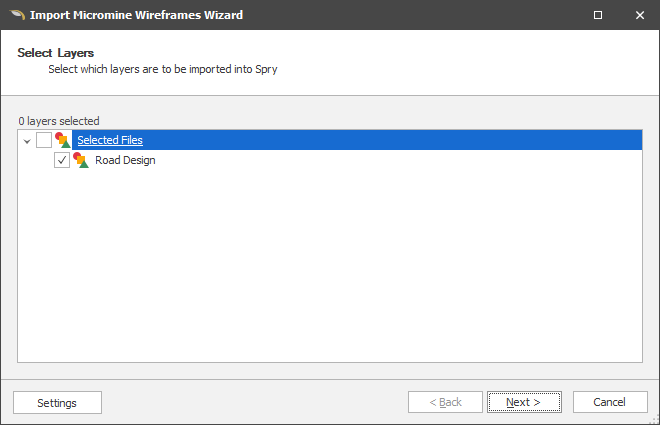 The layer(s) you originally selected for import are available for re-selection. Click Next to continue.