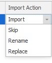 Select an Import Action. The default is "Import" however there may be times when you wan t to "Skip" the import of a file or "Replace" or "Rename" an imported file if the Imported Name already exists.