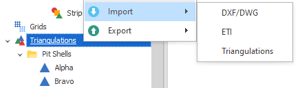 Alternatively, right-click on Triangulations (or an underlying folder) in the Design Data pane and select Import | Triangulations: