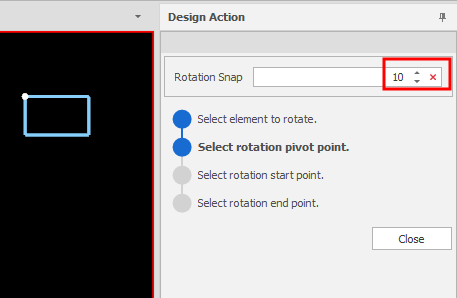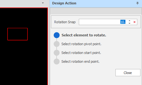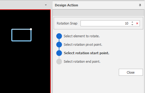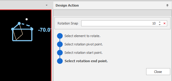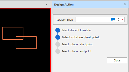You can continue to rotate selected elements or click Close to exit the Rotate Z tool.