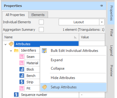 In the Properties pane, right-click on the Attributes node and select Setup Attributes: