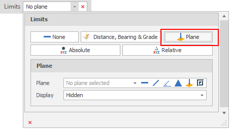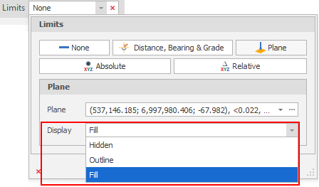 (Optional) There are three Plane Display modes. Select an (Outline or Fill ) option to visualise the plane limit. Hidden (no visualisation) is the default option.