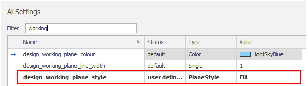 A design_working_plane_style user setting can be set via Settings > All Settings: