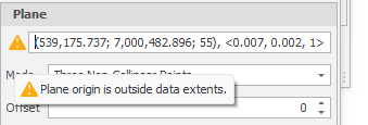 A ‘Plane cannot be null’ error is shown when there are any other errors in the panel. A ‘Plane origin is outside data extents’ warning may also be shown.