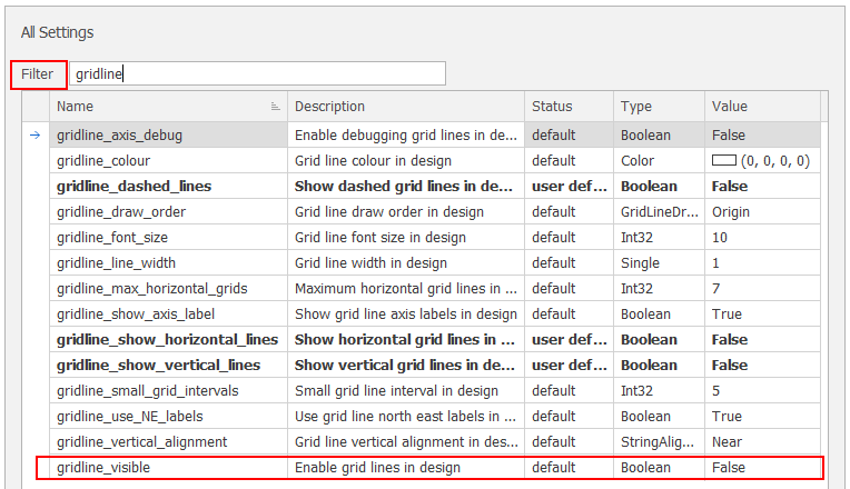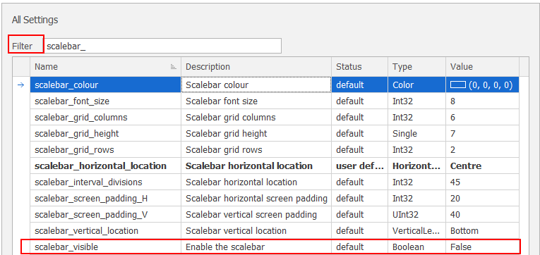 Under Settings > All Settings, you can now configure the appearance and the visibility of a scalebar and gridlines in the Design Window: