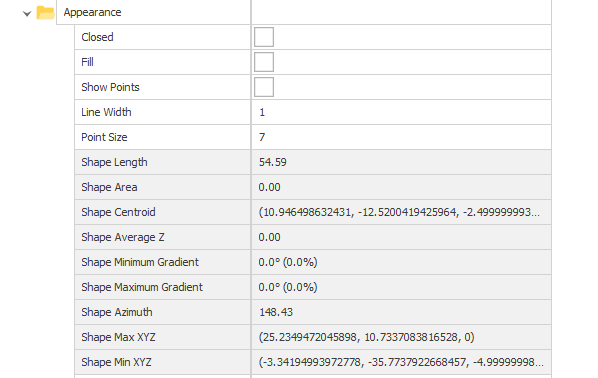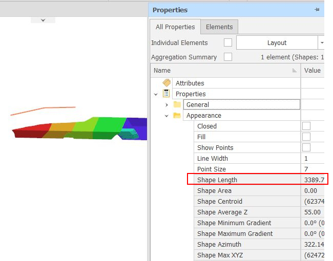In the Properties pane, in the Appearance group, when polylines are selected in the Design Window or in the Animation View, the length of the selected strings are now calculated and shown in the Properties pane as a Shape Length property for each shape.
