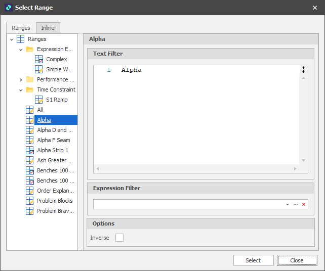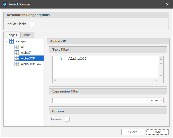An Expression Filter allows for an alternate or additional filtering process to apply to Picked, Ranges From Field Values and Text Ranges. The Expression should result in a True or False (an IF statement is not necessarily required).