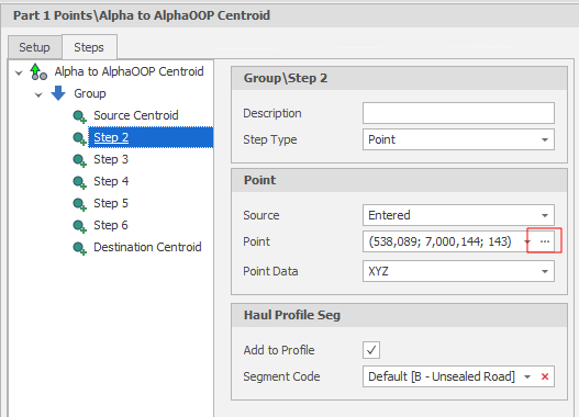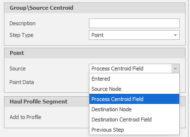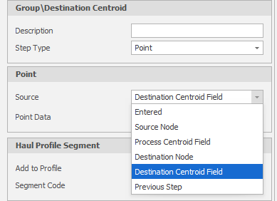 To set a Point Step as a dynamic Source or Destination Point, change the Point Source to Source Node/Destination Node and choose a relevant Centroid: