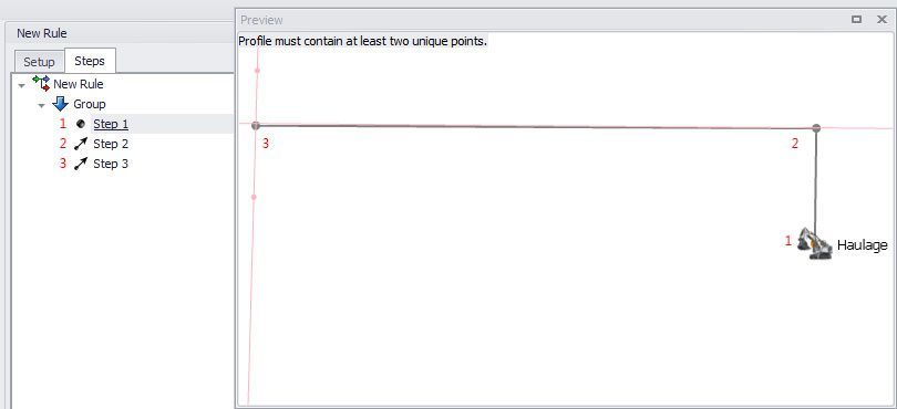 To summarise, all steps in a profile can be considered to be working steps that you can use to create your haul profiles but are not used by a truck until you "Add to Profile". When you add steps to your profile you "connect-the-dots" between them and generate your final haul profile that the application can simulate.