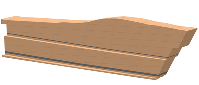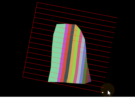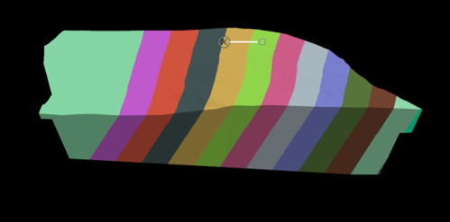 At this point an imported section has been added to a Deposit Table. The example below shows a single strip in the animation, each solid represents a unique combination of Pit, Strip, Block, Bench, Seam and Material.