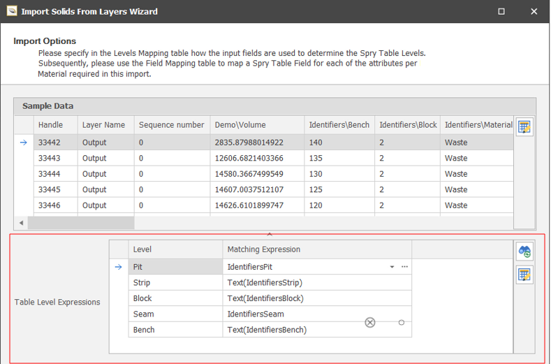 And map the Coal and Waste Solids and Volume fields to the corresponding attributes of the imported solids: