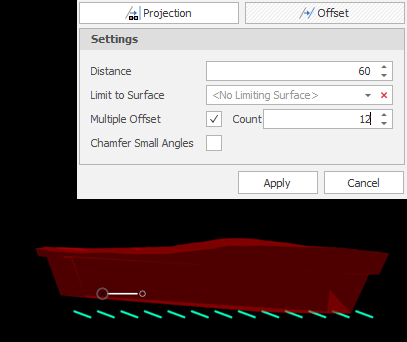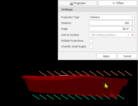 Tip: In more complex scenarios, you can generate strip lines by applying a Projection Sequence. An existing sequence of offsets and projections can be selected and modified if required, or a new sequence can be created in the Projection Sequences Window, which is accessible from the Apply Projection Sequence tool or the Design | Setup right-click menu in the Project Explorer.