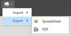 When an application spreadsheet is open, select Export | PDF (from the Import/Export menu on the application window title bar) to export the current application spreadsheet to PDF.