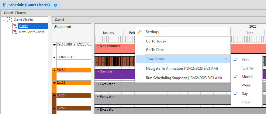 You can also set the Timelines of the chart byright-clicking the Time header on the chart itself: