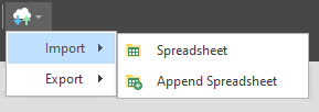 When an application Spreadsheet is open, select Import | Spreadsheet (from the Import/Export menu on the application window title bar) to import an Excel spreadsheet as an application spreadsheet.