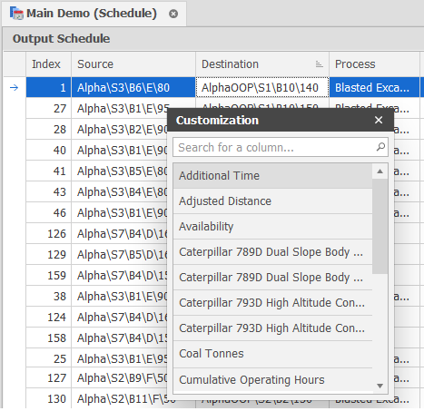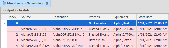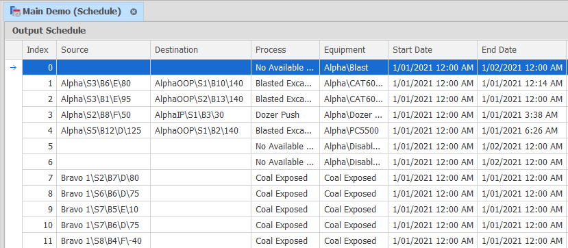 The Output Schedule is also a building block for Haulage simulation.