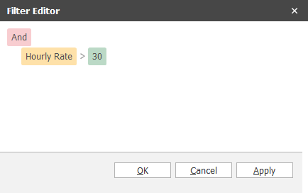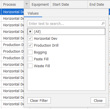 You can also filter any data item in the schedule using the Filter Editor (right-click column header).