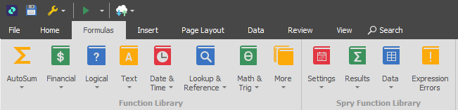 When you switch to the Spreadsheet window, note the additional tabs available, specifically the Formulas tab, which you will use quite frequently.