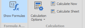 Specify when formulas are calculated (Automatic or Manual). If Automatic calculation is turned off, you can also select Calculate Now (F9) to calculate the entire workbook now or select Calculate Sheet (SHIFT + F9) to calculate the current sheet now.