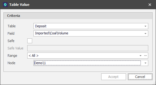 Data: There is only one Data function, which is TABLEVALUE. This pulls data directly from your table of choice and like a Results function has a menu to populate the options.
