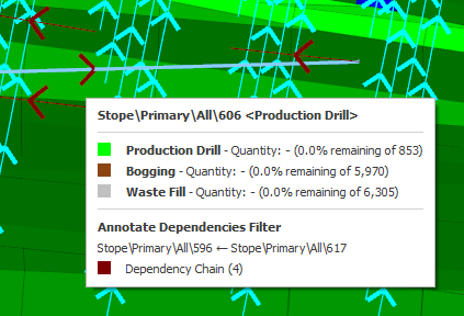 The Annotate Dependencies overlay provides a visual representation of your dependency rules. It is frequently used in the process of creating new dependencies or when evaluating issues with existing dependencies. The overlay can show all of the dependency links you have generated in your schedule. Annotation filters can be applied to show links of a particular dependency type.
