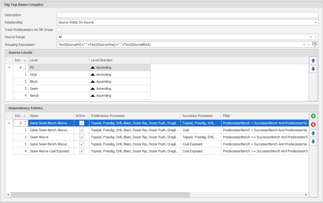 A Sequence Dependency is typically used to create top-down or bottom-up vertical dependencies between different Tasks within a group. Grouping Expression, Level Direction and Index parameters control how the lists of Tasks are created and in what order.