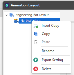 You can manage the list of plot layouts via the navigation pane right-click menu. Options to Insert Copy, Copy, Rename, Delete and Export are provided: