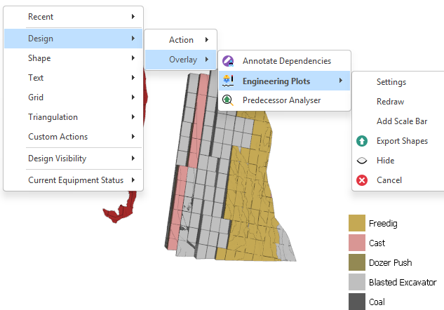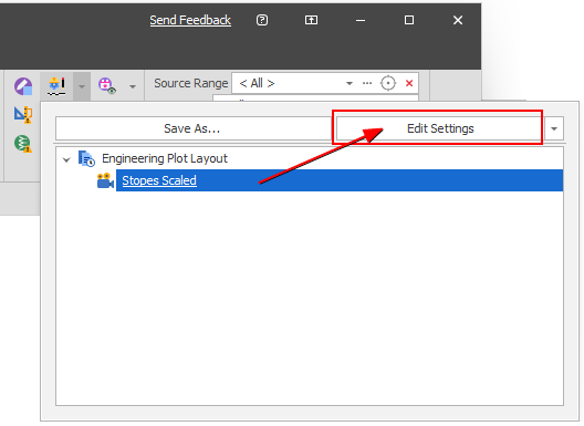Use the Edit Settings drop-down menu to set global Engineering Plot Settings that apply to all plot layouts. You can also use the drop-down menu to Redraw, Add or Reposition a Scalebar, Export and Hide or Show the selected layout.