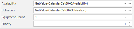 Availability, Utilisation, Equipment Count and Hourly Rate can be hard coded like in the examples above, but if you have a Calendar Table set, you can reference it simply by using the GetValue(CalendarFieldName) command: