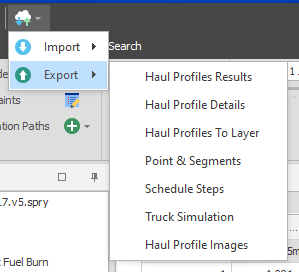 When the Haul Profiles Window is open, select from the following options (on the Export menu on the application window title bar):