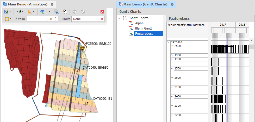 5. The Gantt Charts window and the Animation window are displayed side-by-side.