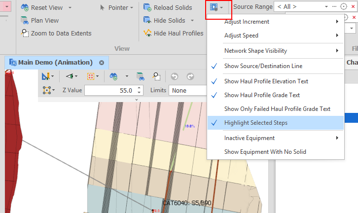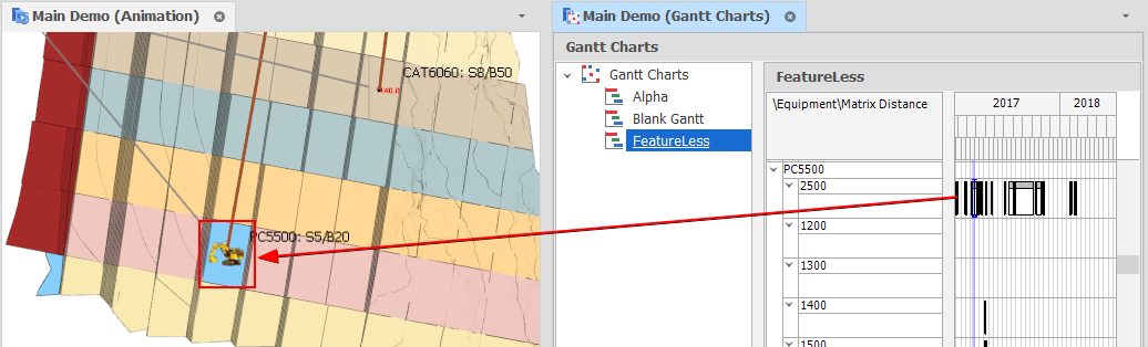 The tasks you select in the Gantt Chart are highlighted in the Animation Window: