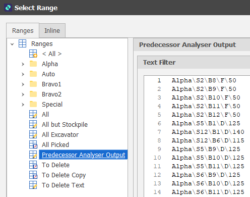 Select this option to export the highlighted solids as a Range. The Range can then be used to build dependencies, for example, to create predecessors for tasks that have no predecessors.