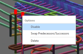 A right-click context menu allows the Predecessor and Successor Range Dependencies you have interactively defined to be enabled/disabled, swapped or deleted:
