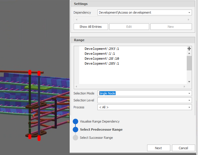 Click Next to complete the Range Dependency Entry definition.