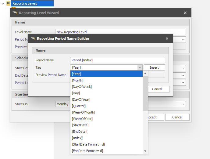 Use Tags in the Reporting Level Wizard to quickly create hundreds of Reporting Periods quickly.