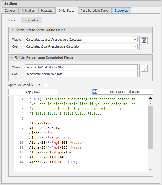 Please note: The process of applying an Initial State writes to the relevant Percentage Fields on the Source Table in order. If you remove the default line * (0%) then the effects of each change to the Initial State will be cumulative as this line serves to reset it.