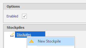 To add a new stockpile to the Scenario, right click on Stockpiles and select New Stockpile: