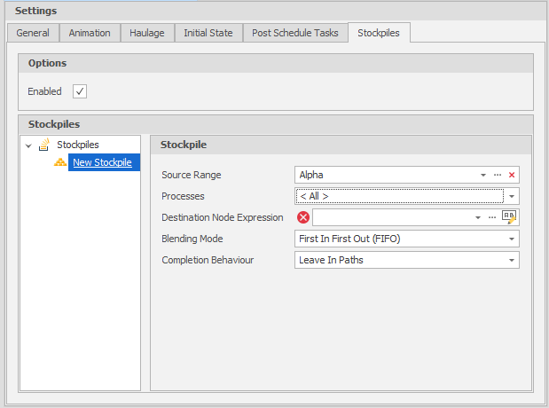 Select the Enabled check box to enable Stockpile simulation