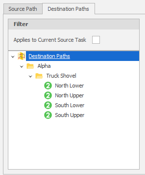 Remember that each Task can be right-clicked or double-clicked for more information. Destination Paths will appear in Bold if they are related to the Active Source Task for the Equipment.