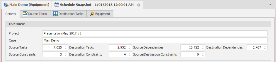 The General tab of the Snapshot Viewer provides a summary of which Dependencies and Constraints are still active at the Snapshot Time. This is also the only Tab with nothing that can be further detailed through a right-click or double-click.