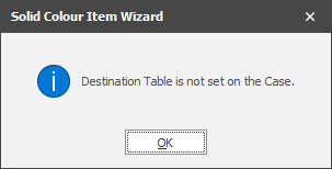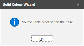 Note that the Source/Destination Table must be set for the Case. If not, a warning message is displayed: