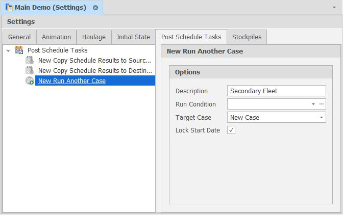 Select the Lock Start Date check box to ensure that the case to be run as a post schedule task has the same start date as the parent case (to synchronise the two cases).