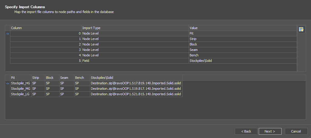 Map the solid to your Stockpiles solid field in this example, dump reserves have been used for stockpile animation.)